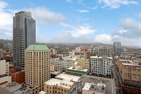Located in the heart of downtown Portland and within walking distance of Pioneer Courthouse Square, this Portland hotel features a gym. The Oregon Zoo is 2.8 miles away and guest rooms include cable TV with HBO. The property is 4 blocks from the Southwest 10th & Alder MAX station. Each room at the The Bidwell Marriott Portland is furnished with coffee facilities and cable TV. The Bidwell Marriott Portland includes the High Horse on Broadway restaurant. It is open for breakfast, lunch and dinner with drop off delivery service for in-house guests. For added convenience a printer available for printing, fitness center and laundry facilities are also available. Less than one mile away is the Lan Su Chinese Garden. The Bidwell Marriott Portland is 12.3 miles from Portland International Airport.