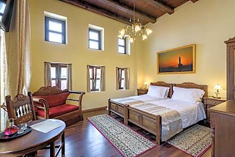 This traditional settlement is housed in a renovated Venetian building on the western-side of the Old Town of Chania, a few yards from the Old Harbor’s edge. Its rooms feature traditional handmade woodcut furniture, a mini-bar, air conditioning and TV. Porto Del Colombo Traditional Boutique Hotel is ideally located at the heart of Chania’s Old Town, walking distance to the center of the new town, the mains shopping streets and the central bus station. At 1640 feet, guests can reach a taxi rank. The hotel offers free coffee and tea all day, as well as free Wi-Fi. The friendly reception staff will gladly advise you of the most beautiful places to visit in Western Crete, and where to sample traditional homemade delicacies and nights out. International Airport of Chania is 11 mi away. License Number(s): 1042Κ050Α0130600