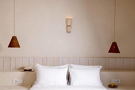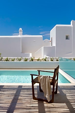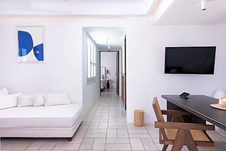 Spacious room decorated in Cycladic style and opening out to a furnished balcony with panoramic sea views. It includes: -satellite LCD TV and DVD player -mini-bar -free toiletries and bathrobes -free WiFi.