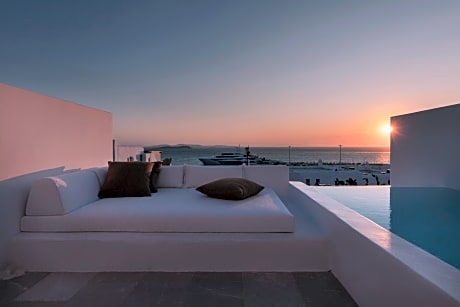 Located over the old port of Mykonos and close to Mykonos Town and the traditional windmills, Porto Mykonos features a freshwater pool and a children's pool. Free public WiFi is available. The Porto Mykonos rooms feature Cycladic and modern elements. Each is air conditioned and includes an LCD TV with satellite channels and a CD/DVD player. Several rooms have balconies that offer sea and sunset views. Mediterranean dishes are served at the hotel’s à la carte restaurant with sea-view terrace. The lounge pool bar offers cocktails and light snacks in a relaxing environment. 24-hour room service is provided. Mykonos Town is a 5-minute walk, while the hotel is only 984 feet from the nearest beach. The hotel’s front desk will assist guests with island information, maps, transfers and sightseeing tours. A private parking area is also available.