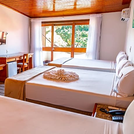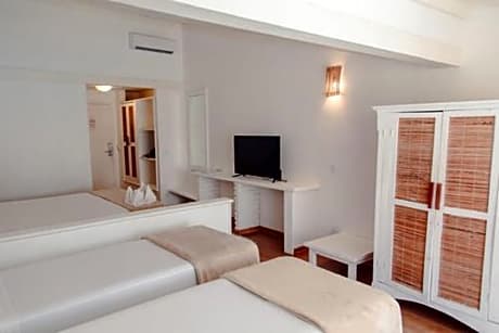 QUADRUPLE CLASSIC is 506 square feet and includes 3 single beds 80-130 width plus balcony, cable tv, hairdryer, and safe and is Wheelchair-accessible.