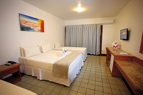 Located 50 meters from Curuípe Beach, this lively hotel is surrounded by lush palms and tropical gardens, where guests can enjoy a relaxing stroll. Indulge in a massage at the spa or savor regional specialties and fresh fish at the restaurant. The bar offers exotic cocktails. Rooms are colorfully decorated and feature private terraces with hammocks, while suites boast panoramic ocean views. The hotel is conveniently located just 4. 6 kilometers from Porto Seguro Airport and 6 miles from Arraial.