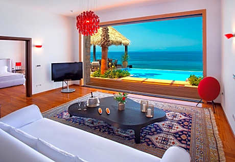 Located in Tragaki, Porto Zante Villas And Spa offers luxurious villas with private heated pools and private gardens set right on the beachfront. Part of the Small Luxury Hotels of the World, the resort includes Greek & Mediterranean restaurant and a contemporary Asian restaurant, a chill-out cocktail bar, and provides exclusive waterfront spa treatments. Boasting unlimited sea views, all villas feature large bedrooms and elegant living areas. They are modernly equipped with Bang & Olufsen entertainment systems, DVD player, Nespresso coffee maker with free capsules and a luxuriously stocked mini-bar. In the marble bathrooms, you will find a spa bath, Bulgari amenities and Armani Casa bathrobes. At Club House Restaurant, you can enjoy Greek and Mediterranean cuisine in a relaxing beachfront setting. Maya Restaurant offers contemporary Asian Cuisine with a Japanese and Thai flair. 24-hour dining service is also available providing guests with freshly prepared breakfast, light snacks and a la carte dinner in the privacy of their villas. Porto Zante’s spa offers over 20 treatments, including a series of holistic, natural and effective therapies that combine natural products with innovative techniques. The resort features also a gym, and a personal trainer is also available. There is a Kids' Club and an outdoor playground. Babysitting services and baby equipment are also provided. The main town and port of Zakynthos is 4.3 mi away, while Dionisios Solomos International Airport is at 5 mi. Airport transfer is provided free of charge and free private parking is possible on site.