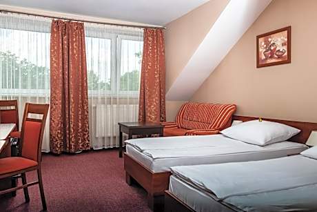 Prima is a hotel in Puławy, 656 feet from the train station. It offers warmly decorated rooms with free Wi-Fi and satellite TV. There is a 24-hour front desk service. Each room at Prima features a private bathroom with shower. There is a desk to work at, as well as a telephone. Carpeted floors and curtains create a cozy atmosphere. The hotel includes a restaurant specializing in Polish and Mediterranean cuisine, where breakfast is served. There is a music café, where live concerts are organized. Prima has free private parking and is located 1312 feet from the city stadium. There is a swimming pool 1969 feet away.