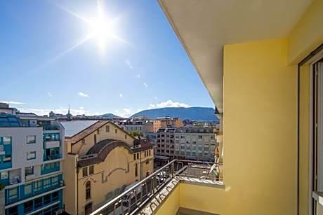 Primadom Aparthotel is the first aparthotel with a co-living space that offers great flexibility and adapts to all the needs of our customers, whether for an internship of a few months in an international organization, a short-term mission of a few weeks or participation in a conference or seminar lasting a few days. Our apartments, studios and rooms offer different comfort options: from large fully equipped apartments and studios to co-living rooms with shared bathrooms. Primadom Aparthotel is located in the heart of Plainpalais close to the University of Geneva (UNIGE). Immediate proximity to public transport (tram lines 15 and 17, bus 35, A1, A6, NC, NM). Line 15 takes you to Cornavin station in 10 minutes and to the Nations (international organizations district) in 20 minutes.