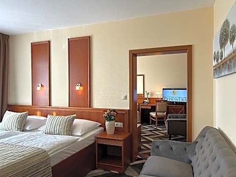 The modern family Primavera Hotel & Congress center is located on the outskirts of Plzen, 0.9 mi from the D5 / E50 motorway, and offers you Czech and International cuisine, free parking and free internet in all rooms. All rooms are air-conditioned and some rooms also have a balcony. Guests can enjoy a meal either at the Primavera restaurant with an open-air summer terrace or at the wine bar. Primavera Hotel & Congress center is within easy walking distance from a shopping and entertainment center including a cinema. A couple of conference halls and a number of fully-equipped meeting rooms are available. It is only a 15 minute journey to the city center by public transport from the Primavera hotel.