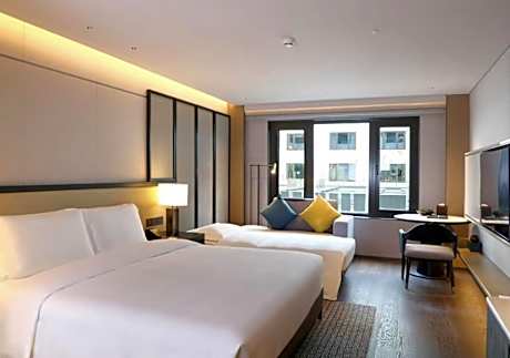 Great care is taken to ensure guests experience comfort through top-notch services and amenities.Stay connected with your associates, as complimentary Wi-Fi is available during your entire visit. To facilitate your arrival and departure, you can pre-book airport transfer services prior to checking in. The hotel offers taxi, car hire and shuttle amenities for your ease in navigating around Beijing.When arriving by car, take advantage of the hotel's convenient on-site parking facilities.The hotel offers reception amenities including concierge service, express check-in or check-out, luggage storage and safety deposit boxes to ensure a comfortable stay for guests. Should you require assistance, the ticket service and tours can also aid in booking tickets and securing reservations at the finest shows and events in the vicinity. Whether it's an extended stay or simply needing fresh attire, dry cleaning service and laundry service provided by hotel ensures your cherished travel garments stay spotless and accessible. Your stay will be comfortable with the presence of room service and daily housekeeping as an in-room amenity for your relaxation and enjoyment. To ensure the well-being and convenience of all visitors, smoking is strictly prohibited throughout the entire hotel.Smoking is permitted solely in the specified smoking zones allocated by hotel.In order to ensure the utmost level of relaxation, the guestrooms feature an inviting design and are equipped with all basic necessities, creating a delightful stay experience.To ensure a pleasant stay, a selection of rooms at hotel come furnished with linen service, blackout curtains and air conditioning, all designed with your ease in mind.In select rooms, visitors can enjoy a touch of amusement with the availability of television and cable TV for their entertainment needs. Within specific rooms, a refrigerator, a coffee or tea maker, bottled water, instant coffee, instant tea and mini bar is conveniently available for your use. Understanding the significance of bathroom facilities in enhancing visitor contentment, hotel offers a hair dryer, toiletries, bathrobes and towels within a few chosen chambers. Start your day stress-free at Empark Prime Hotel Beijing (Wangfujing) as breakfast is made available for you on the premises.How about kicking off each day of your getaway with a delicious cup of coffee? At the hotel, relish in the invigorating taste of a freshly brewed, excellent coffee. Various excellent meal offerings at hotel ensure that enticing and easily accessible options are constantly available. Upon your arrival, don't miss experiencing bar for enjoyable in-house evening entertainment.Throughout the day, engage in the entertaining activities available at Empark Prime Hotel Beijing (Wangfujing). Unwind effortlessly each day by exploring the steam room, conveniently situated within the hotel. Unwind by the pool at hotel and cherish a leisurely moment.Guests who enjoy maintaining their fitness regimen while on holiday can visit the fitness center provided by hotel.