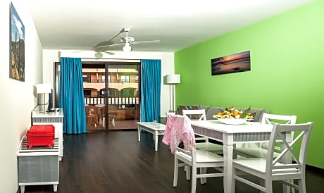 This attractive complex offers comfortable suites that feature unique balconies, which are characteristic of the Canary Islands. This property is set in pretty, landscaped gardens. This ideal holiday destination offers very large and comfortable units, a friendly atmosphere and a very convenient location. The complex enjoys both a peaceful position while still being near to the local conveniences and shopping center of the resort. Each bright and colorful apartment comes with a seating area and a fully equipped kitchen. Soak up the sun on the loungers provided before cooling off in the outdoor pool, while the children have fun in the splash area. You can also cool down with a refreshing drink from the relaxed bar of the Alisios. The beach is just over 0.6 mi away and where you will discover fantastic, Atlantic views and dramatic, sandy beaches.