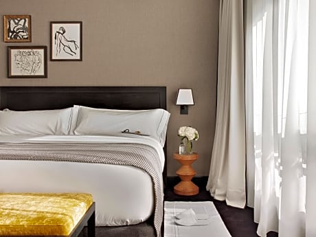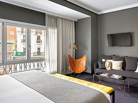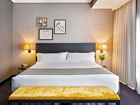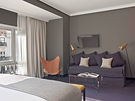 Iconic views of Madrid’s Gran Via Avenue are offered at the elegant rooftop terrace and Atico restaurant/cocktail bar of The Principal Madrid, Small Luxury Hotels. This luxurious boutique hotel offers a gym, and stylish rooms and suites. The Wellness Suite can be booked entirely and exclusively for couples or individual treatment sessions. Some room and suite types include free access to Wellness Suite services. Spacious air-conditioned rooms and suites all have a TV with cable and satellite channels. Each has a desk, safe, mini-bar and private bathroom with a hairdryer. Just a few of the extras in certain rooms or suites include butler service, and Nespresso coffee machines. Apart from spectacular views, the hotel’s Atico restaurant/cocktail bar offers avant-garde haute cuisine and classic cocktails in a laid-back atmosphere of modern loft club with glamorous original architecture from 1917. Located at the heart of Madrid, the hotel is surrounded by an array of entertainment, dining and shopping options, and is just 1312 feet from the Thyssen-Bornemisza Museum.