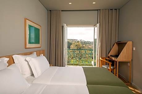 Luxury, tranquility and hospitality are the main elements that make up this impressive 4-star hotel, ideally located just 5 minutes from the center of Viseu. Gardens surround the hotel making it an inviting place to sit at the terrace and relax with a drink. Spacious rooms focus on comfort and harmony, providing you with a welcome retreat after a day of activities or work. Surrounded by mountains and beautiful landscapes, the city of Viseu is centered between the shores of the Atlantic Ocean and the Spanish border. Noted for its art scene, Viseu is an attractive destination for culture enthusiasts as well as nature lovers.
