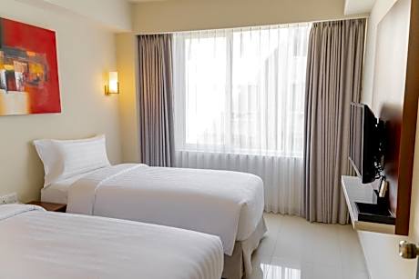 Great care is taken to ensure guests experience comfort through top-notch services and amenities.Stay connected with your associates, as complimentary Wi-Fi is available during your entire visit. To facilitate your arrival and departure, you can pre-book airport transfer services prior to checking in. The hotel offers taxi, car hire and shuttle amenities for your ease in navigating around Bali. When arriving by car, you'll be grateful for the on-site complimentary parking at hotel. The hotel offers reception amenities including concierge service, luggage storage and safety deposit boxes to ensure a comfortable stay for guests.Should you require assistance, the ticket service and tours can also aid in booking tickets and securing reservations at the finest shows and events in the vicinity. Whether it's an extended stay or simply needing fresh attire, dry cleaning service and laundry service provided by hotel ensures your cherished travel garments stay spotless and accessible. Your stay will be comfortable with the presence of 24-hour room service, room service and daily housekeeping as an in-room amenity for your relaxation and enjoyment.To ensure the well-being and convenience of all visitors, smoking is strictly prohibited throughout the entire hotel. Smoking is permitted solely in the specified smoking zones allocated by hotel. In order to ensure the utmost level of relaxation, the guestrooms feature an inviting design and are equipped with all basic necessities, creating a delightful stay experience. To ensure a pleasant stay, a selection of rooms at hotel come furnished with linen service, blackout curtains and air conditioning, all designed with your ease in mind.Several chosen accommodations at Aston Denpasar Hotel & Convention Center have a separate living room incorporated into the room design. In select rooms, visitors can enjoy a touch of amusement with the availability of television and cable TV for their entertainment needs.Within specific rooms, bottled water, a coffee or tea maker and mini bar is conveniently available for your use.Understanding the significance of bathroom facilities in enhancing visitor contentment, hotel offers a hair dryer, toiletries and bathrobes within a few chosen chambers. Start your day stress-free at Aston Denpasar Hotel & Convention Center as breakfast is made available for you on the premises. How about kicking off each day of your getaway with a delicious cup of coffee? At the hotel, relish in the invigorating taste of a freshly brewed, excellent coffee.Various excellent meal offerings at hotel ensure that enticing and easily accessible options are constantly available. Visitors with specific dietary preferences can savor a variety of culinary styles at Aston Denpasar Hotel & Convention Center, featuring halal choices to accommodate their needs. Upon your arrival, don't miss experiencing bar for enjoyable in-house evening entertainment. Within the hotel, discerning guests will also find on-site culinary facilities like BBQ facilities and shared kitchen to further cater to their needs.Throughout the day, engage in the entertaining activities available at Aston Denpasar Hotel & Convention Center.Unwind and conclude each day delightfully by stopping by massage and spa, ensuring a soothing experience. Unwind by the pool at hotel and cherish a leisurely moment. Guests who enjoy maintaining their fitness regimen while on holiday can visit the fitness center provided by hotel.