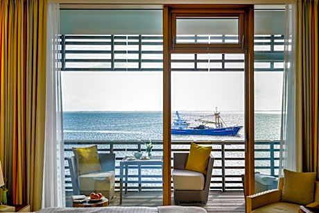 A golf course, elegant restaurant and extensive spa area are offered by this beachside hotel. It enjoys a picturesque setting on the North Sea coast, with charming views of Sylt’s countryside and Hörnum Harbor. The 5-star Budersand Hotel - Golf & Spa features bright and spacious rooms and suites with decorated with stylish interiors. Comforts include extra-large beds, free WiFi and a furnished balcony or terrace. Budersand Hotel offers a range of dining options including the Restaurant KAI3, which serves gourmet cuisine. Fine wines can be sampled in the hotel’s chic wine cellar. Relaxing massages and a range of beauty treatments can be booked in Budersand’s spa. Active guests can enjoy a round of golf or take part in water sports such as windsurfing. Hörnum’s ferryport is 1969 feet from Hörnum. Free on-site parking is available.