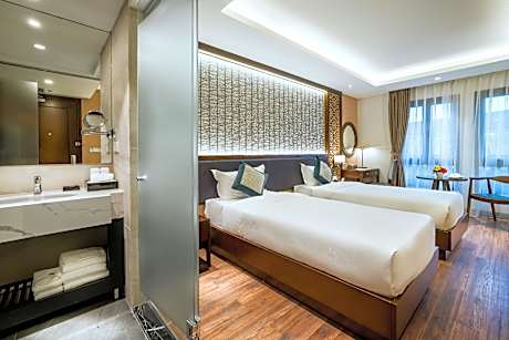 Located in Hanoi and with St. Joseph Cathedral reachable within a few steps, Conifer Grand Hotel has concierge services, allergy-free rooms, a fitness center, free WiFi throughout the property and a bar. This 4-star hotel offers a tour desk and luggage storage space. The property provides room service, a 24-hour front desk and currency exchange for guests. The hotel will provide guests with air-conditioned rooms offering a desk, an electric tea pot, a fridge, a minibar, a safety deposit box, a flat-screen TV and a private bathroom with a bidet. The rooms have a closet. Buffet and continental breakfast options are available at Conifer Grand Hotel. At the accommodation you'll find a restaurant serving American, French and Seafood cuisine. Vegetarian, dairy-free and gluten-free options can also be requested. The property has a hairdresser's and business center. Popular points of interest near Conifer Grand Hotel include Thang Long Water Puppet Theater, Hoan Kiem Lake and Ha Noi Railway station. Noi Bai International Airport is 16 miles from the property, and the property offers a paid airport shuttle service.