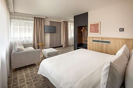 Localizado no centro de Budapeste, o Crowne Plaza Budapest, um hotel IHG, fica ao lado da Estação de Trem e Metrô Nyugati e tem conexão direta com o Shopping Center Westend, no shopping húngaro Westend Bevásárlóközpont. O hotel oferece Wi-Fi em todas as áreas, além de sauna e uma academia moderna com vista para a cidade. Os quartos elegantemente mobiliados e com ar-condicionado do Crowne Plaza Budapest, um hotel IHG, dispõem de uma ampla mesa de trabalho com cadeira ergonômica, frigobar, comodidades para fazer chá e café, TV a cabo e banheiro. O elegante restaurante Cult serve pratos húngaros e internacionais, complementados por uma ampla seleção de vinhos, um menu infantil e opções vegetarianas. No Axis Café & Lounge, que dispõe de um terraço de verão, os hóspedes podem desfrutar de um coquetel, café ou lanche em um ambiente elegante. As casas noturnas e bares ao redor da Praça Oktogon e em Nagymező Utca ficam a 15 minutos a pé, enquanto o Parlamento Húngaro também fica a 15 minutos a pé. O Aeroporto Ferihegy fica a 21 km do Crowne Plaza Budapest, an IHG Hotel, e um serviço de translado está disponível por um custo adicional.