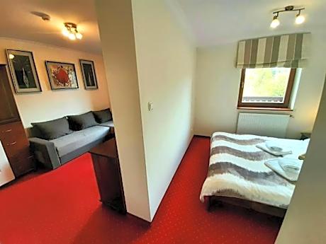 Dworek Szwajcaria in Zwardoń provides accommodations with free bikes, a garden, and a shared lounge. This property offers access to darts. There's a sun terrace and guests can access free Wifi and free private parking. At the bed and breakfast, every unit is equipped with a wardrobe, a flat-screen TV, a private bathroom, bed linen, and towels. The rooms are equipped with heating facilities. Guests at the bed and breakfast can enjoy a buffet or a continental breakfast. There is an on-site restaurant, coffee shop, and bar. For guests with children, Dworek Szwajcaria features an indoor play area, outdoor play equipment, and a kids' club. Skiing and cycling can be enjoyed nearby, while a ski pass sales point and ski storage space are also available on-site. Zagron Istebna Ski Resort is 12 miles from the accommodation, while John Paul II Route in Beskid Zywiecki is 12 miles from the property.