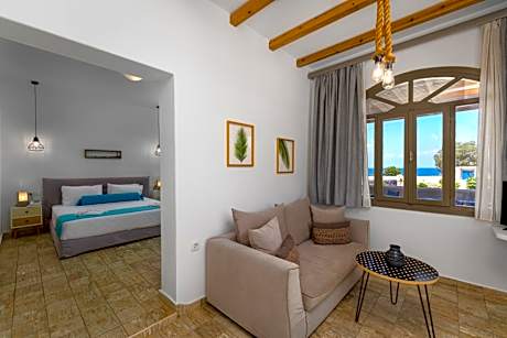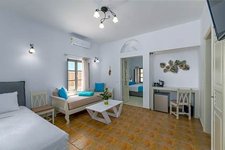 Imagine a place where the iconic charm of Santorini meets serene luxury. En Plo Boutique Suites is your intimate retreat, perfectly blending traditional Cycladic elegance with modern comfort. Located moments from the cosmopolitan allure of Oiayet nestled in a peaceful seaside setting, we offer an ideal escape for romantic getaways and those seeking genuine tranquility and relaxation. Refresh yourself in the crystal-clear, turquoise waters of our stunning outdoor swimming pool. Relax on luxurious sun loungers with a cocktail from our Pool-Bar & Restaurant. Start your day with a delightful, fresh Μediterranean breakfast, featuring ingredients picked right from our own gardens. Enjoy light snacks and an exquisite lunch menu, perfectly paired with a curated list of local Santorini wines. Our commitment to fresh, healthy, "farm-to-table" meals is a hallmark of the En Plo experience. Our elegantly decorated, spacious suites are a masterclass in Cycladic style, each with a private entrance and all the modern amenities you need. Wake up to endless views of the magnificent azure Aegean Sea and the wonderful inland scenery from your "private veranda". While offering a peaceful sanctuary, En Plo's convenient location ensures you won't miss a thing. We provide easy, stress-free access to all of Santorini's famous beache, important sights, and of course, the magical, colorful sunsets of Oia. Free on-site parking makes exploring a breeze. Our guests consistently praise the impeccable cleanliness, exceptional comfort, and the warm, personalized service from our dedicated team. We are your home away from home, offering outstanding value and a genuine local connection. For a truly authentic, romantic, and tranquil stay - where the owners' personal touch and fresh, homemade cuisine elevate every moment - En Plo Boutique Suites is the discerning choice.