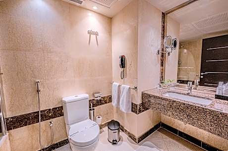Maysan Al Harithia Hotel offers 5-star accommodations overlooking the Prophet Mosque, which is a few steps away from Prophet Mosque. It features a gym and rooms with free Wi-Fi. Red floor carpets and recessed lighting provide the air-conditioned rooms with a warm feel. Each room has a flat-screen satellite TV and DVD player. The private bathrooms have double vanities. After a good night’s rest, Guests can in joy the breakfast in the restaurant. The hotel's restaurant serves traditional Saudi cuisine. There is also a selection of on-site shops. Please note that during the month of Ramadan (from 18th of February 2026 till 20th of march 2026), Iftar will be served instead of breakfast and Suhoor will be served instead of dinner. Charged private parking is offered at Maysan Al Harithia Hotel.(Upon availability) Staff at the 24-hour reception can arrange a shuttle service to and from Prince Mohammad Bin Abdulaziz Airport. License Number(s): 10008016