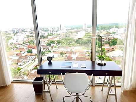 Localizado em Santa Cruz de la Sierra, a 2 km da Universidade Autônoma Gabriel René Moreno, o Hampton by Hilton Santa Cruz oferece acomodações com academia, estacionamento privativo gratuito, jardim e restaurante. Este hotel 5 estrelas oferece caixa eletrônico e business center. A propriedade dispõe de recepção 24 horas, translado para o aeroporto, serviço de quarto e Wi-Fi gratuito em todas as áreas. Os quartos do hotel estão equipados com TV de tela plana e secador de cabelo. O Hampton by Hilton Santa Cruz oferece opções de café da manhã em estilo buffet e americano. O Parque Arenal fica a 3,8 km da acomodação, enquanto a Praça Metropolitana 24 de Setembro está a 4 km de distância. O Aeroporto Internacional Viru Viru fica a 13 km da propriedade.