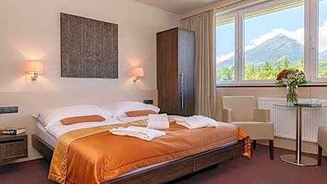 Hotel HORIZONT RESORT is in the village of Stará Lesná, only 1.2 mi from Tatranská Lomnica the ski area. Rooms in hotel Horizont Resort are offering panoramic views of High Tatras Mountains, free WiFi is provided throughout the property and free private parking is available on site. Horizont Resort is made of natural materials and ceder wood. Each room features modern furnishings, a flat-screen TV, a safety deposit box, a mini-bar and a private bathroom with a shower or a bath tub, a hairdryer and free toiletries. Meals can be enjoyed in the on-site restaurant. Other facilities available free of charge include an indoor pool, a wellness center , a fitness center, ski storage, kid´s club, a children´s playground, a games room, a garden, a terrace and a 24-hour front desk. Massages, a solarium, outdoor hot tub VIP Sky Lounge with a private finish sauna, meeting and banquet facilities are offered for an extra charge. The area is popular for skiing and hiking. Aquacity Poprad is reachable within 6.2 mi.