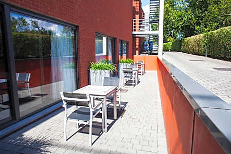 Hotel Rastelli is a brand new and modern hotel in the center of Tervuren, next to Brussels, the international airport Zaventem and close to the major highways. It is situated next to a beautiful park behind the museum of Tervuren and at the beginning of the relaxing greens of the forest "Zonnienwoud". The 44 large rooms (6 with kitchenette) with a terrace and bath, shower and toilet are all equipped with a telephone, TV and free wireless internet. The hotel also offers 2 meeting rooms and a parking space for 20 cars.