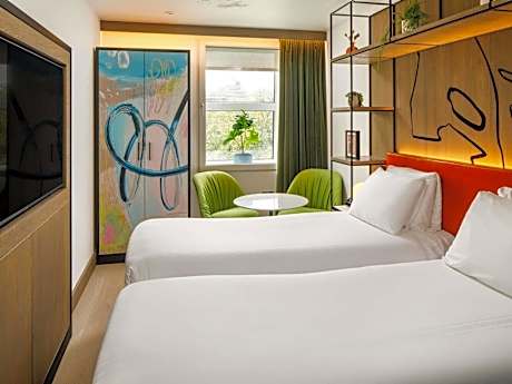 A apenas 2 minutos a pé da Princes Street, o ibis Styles St Andrew Square oferece quartos com design exclusivo no centro de Edimburgo. A cerca de 10 minutos a pé da Estação de Trem de Edimburgo, este hotel ibis dispõe de recepção 24 horas, bar e restaurante, além de Wi-Fi gratuito. Cada quarto recém-reformado e climatizado dispõe da "Sweet Bed" by ibis Styles, TV de tela plana e comodidades para fazer chá e café. Cada quarto dispõe de banheiro privativo com chuveiro e secador de cabelo. O café da manhã continental é servido diariamente no ibis Styles St Andrew Square, com um buffet de pratos frios. O restaurante serve refeições todas as noites, das 12h às 21h30, e o bar oferece bebidas, das 12h à 1h. Este hotel fica a cerca de 12 minutos a pé do Castelo de Edimburgo e a 6 minutos da Galeria Nacional Escocesa. O Holyrood Park, lar do Trono de Arthur e dos Penhascos de Salisbury, fica a pouco mais de 1,6 km do ibis Styles St Andrew Square.