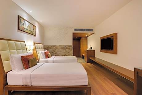 Great care is taken to ensure guests experience comfort through top-notch services and amenities. Remain linked during your visit by utilizing the complimentary internet access available.Prior to your check-in date, you can arrange airport transportation services, guaranteeing a seamless and efficient experience for both arrival and departure.Discovering Agra becomes even more accessible, thanks to the car hire amenities provided at the hotel. The hotel offers complimentary parking for guests who arrive with their own mode of transport.Effortlessly plan your daily activities and travel requirements with concierge service, express check-in or check-out, luggage storage and safety deposit boxes provided by the front desk services.Securing top-notch tickets and reserving prime dining spots become effortless through assistance from the hotel's tours. For extended visits or whenever required, the dry cleaning service and laundry service ensures your preferred travel garments remain clean and accessible. During leisurely days and evenings, in-room amenities such as 24-hour room service, room service and daily housekeeping enable you to maximize your stay in the room. The hotel is completely smoke-free. In limited designated zones, smoking is exclusively permitted. Crafted for coziness, every guestroom provides an array of features, guaranteeing a tranquil night's sleep while maintaining the level of comfort. For a more enjoyable stay, select rooms at hotel are equipped with linen service and air conditioning.For certain chosen rooms, guests can enjoy in-room amusement like daily newspaper, television and cable TV as a part of their stay.Rest assured that your hydration needs will be met, as some guestrooms are equipped with a coffee or tea maker, bottled water and mini bar.Maintain your cleanliness and comfort using a hair dryer, toiletries and bathrobes available in select guest restrooms. Begin your holiday mornings right with your essential cup of coffee, offered daily at the cafe on-site. During your visit, indulge in a range of delightful culinary choices at hotel to enhance your experience. Experience a fantastic evening effortlessly! Relish an entertaining night without venturing beyond the confines of the bar.Indulge in the numerous pursuits available at Saura Hotel, Agra- A Club Mahindra Associate. Treat and spoil yourself by stopping at salon, steam room, spa and sauna for a memorable experience.At the hotel, enjoy a laid-back beverage experience by the poolside bar, sipping on a soothing cocktail. Eliminate those holiday calories by stopping by hotel and making use of their well-equipped exercise amenities.