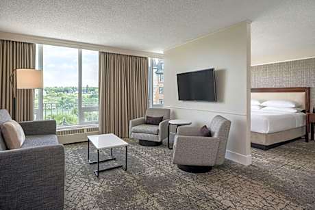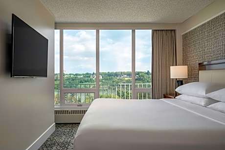 Este hotel fica ao lado do Rio South Saskatchewan, no Distrito Central de Negócios de Saskatoon. O hotel oferece um parque aquático coberto, refeições no local e Wi-Fi gratuito. O Sheraton Cavalier Saskatoon Hotel dispõe de quartos totalmente para não fumantes, com TVs de tela plana e café Starbucks. Produtos de banho de grife também estão incluídos. O Saskatoon Sheraton Cavalier's River Country Water Park oferece 1 toboágua, uma grande piscina principal e uma piscina infantil. Os hóspedes podem utilizar as 2 banheiras de hidromassagem ou a academia 24 horas. O Carver's Steakhouse and Lounge oferece os melhores cortes de carne, acompanhados por um extenso menu de vinhos e coquetéis exclusivos, esperando por você. Um ambiente intimista e elegante lhe dará espaço para se concentrar no que está à sua frente: sua refeição, seu vinho, seus amigos próximos ou um convidado especial no jantar do Sheraton em Saskatoon. Com vistas fabulosas, o Scarlet Craft Kitchen oferece refeições divertidas e casuais em um espaço vibrante e contemporâneo próximo ao saguão. Nosso cardápio tentador inclui comidas reconfortantes e clássicos canadenses, como hambúrgueres. Ou saboreie uma bebida quente e um momento de tranquilidade no TheExpress, a boutique de presentes, banca de jornal e cafeteria do hotel, que oferece café Starbucks®, cappuccinos e espressos.