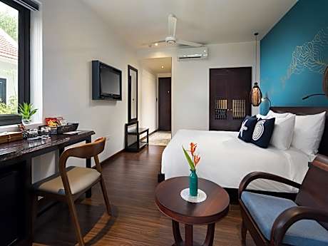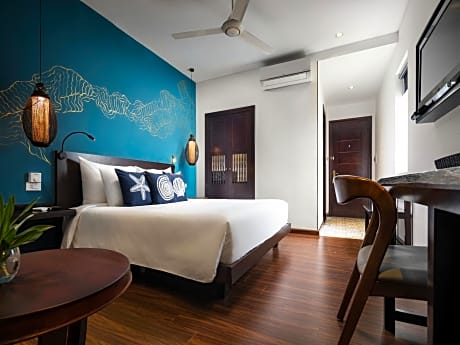 The Blue Alcove provides flawless service and all the necessary facilities for visitors. Stay connected with your associates, as complimentary Wi-Fi is available during your entire visit. To facilitate your arrival and departure, you can pre-book airport transfer services prior to checking in. The hotel offers taxi and car hire amenities for your ease in navigating around Hoi An.When arriving by car, take advantage of the hotel's convenient on-site parking facilities.The hotel offers reception amenities including concierge service, luggage storage and safety deposit boxes to ensure a comfortable stay for guests. Should you require assistance, the ticket service and tours can also aid in booking tickets and securing reservations at the finest shows and events in the vicinity. Whether you're here for an extended stay or simply require fresh garments, the hotel ensures your cherished travel attire remains spotless and accessible with the convenience of laundry service located on the premises.The hotel's daily housekeeping ensures an excellent option for your stay.Smoking is permitted solely in the specified smoking zones allocated by hotel.In order to ensure the utmost level of relaxation, the guestrooms feature an inviting design and are equipped with all basic necessities, creating a delightful stay experience. To ensure a pleasant stay, a selection of rooms at hotel come furnished with linen service, blackout curtains and air conditioning, all designed with your ease in mind. At The Blue Alcove, various room configurations are available, featuring separate living room and balcony or terrace in some rooms.Selected rooms offer in-room amusement like television as a source of entertainment for guests to enjoy.Within specific rooms, a refrigerator, bottled water and mini bar is conveniently available for your use. Understanding the significance of bathroom facilities in enhancing visitor contentment, hotel offers a hair dryer and toiletries within a few chosen chambers. Start your day stress-free at The Blue Alcove as breakfast is made available for you on the premises.Throughout the day, engage in the entertaining activities available at The Blue Alcove.Unwind by the pool at hotel and cherish a leisurely moment.