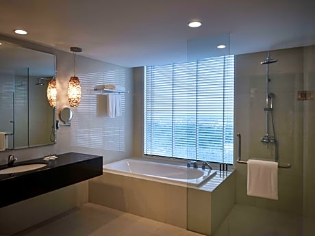 Experience an abundance of unparalleled facilities and features at Pullman Kuching Hotel. Maintain seamless communication using the complimentary Wi-Fi at hotel.Effortlessly arrange transportation to and from the airport using the hotel's airport transfer services. Discovering Kuching becomes even more accessible through the taxi and car hire amenities provided at the hotel.Guests can avail parking facilities at the hotel.During your stay at this fantastic hotel, the attentive front desk personnel can provide you with a range of amenities such as concierge service, express check-in or check-out, luggage storage and safety deposit boxes.At the hotel, utilize the on-site dry cleaning service and laundry service to maintain your beloved travel attire fresh, allowing you to bring fewer clothes.Craving relaxation? Make the most of your stay at the Pullman Kuching Hotel with convenient amenities like 24-hour room service, room service and daily housekeeping at your disposal. For all your minor, last-minute requirements, the convenience stores can promptly cater to them, eliminating the need to venture out. Kindly note that smoking is prohibited in the hotel to ensure fresher air for all visitors. For visitors wishing to smoke, designated smoking zones can be found. At Pullman Kuching Hotel, every guestroom is provided with convenient amenities and fittings to ensure a comfortable stay.Enhance your experience at hotel with the knowledge that certain rooms are equipped with linen service, blackout curtains and air conditioning for your convenience. Certain rooms boast in-room amusement features such as daily newspaper, television, in-room video streaming and cable TV, offering guests an enjoyable stay. In select rooms within the hotel, bottled water, a coffee or tea maker and mini bar is available to cater to your requirements when desired.It is worth noting that certain guest bathrooms feature a hair dryer, toiletries and bathrobes for your convenience. Begin your day with a scrumptious on-site breakfast available each morning at Pullman Kuching Hotel.Begin your day feeling refreshed and invigorated as you enjoy a delightful cup of quality coffee available at the cafe situated within the hotel. At the hotel, an assortment of easily accessible and delicious meal choices are available to satisfy your appetite whenever it strikes.At Pullman Kuching Hotel, they are committed to catering to your unique requirements. They offer a variety of meal choices, encompassing halal alternatives for those with special dietary preferences.Enjoy an entertaining evening with your fellow travelers at the hotel's bar.During your stay at hotel, an array of engaging activities and amenities guarantees a delightful experience. Conclude your holiday experience perfectly by visiting salon before you depart.Be sure to drop by the pool at hotel at least once during your stay. Discover the fitness amenities at hotel to maintain your health and strength during your getaway.