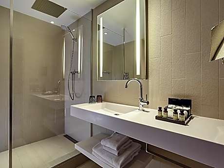 Pullman Paris La Défense is a 5* hotel located in La Défense business district, opposite the CNIT and Grande Arche. Provided with private parking, it is just a 2-minute from the Quatre Temps Shopping Center, which is open 7/7. The U Arena is located 0.6 mi away from the hotel. The contemporary guest rooms include fiber-optic internet access free of charge and a flat-screen TV with international channel. Several types of breakfast can be enjoyed every morning before work or sightseeing, including a full buffet breakfast, as well as an Asian and gluten free options. Breakfast is served from 06:30 to 10:00 from Monday to Friday and until 11:00 on weekends. Authentic cuisine adapted to your taste are also available in the restaurant. The Quinte & Sens Restaurant serves international cuisine and drinks are proposed in the bar. Additional facilities at Pullman Paris La Défense include a fitness center (open 24 hours a day) with a hammam. Room service is available 24 hours a day. The Champs-Elysées is 10 minutes away by metro. Only one bottle left in some rooms - There is no longer a mini-bar - There are no more individual toiletries in the bathrooms. They are dispensers