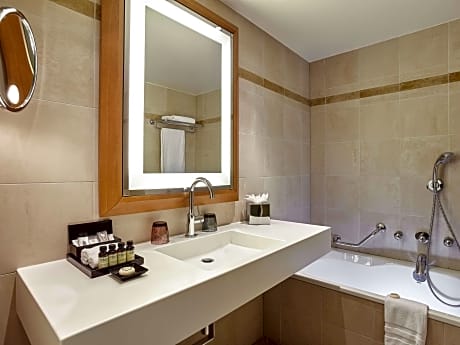 Pullman Paris La Défense is a 5* hotel located in La Défense business district, opposite the CNIT and Grande Arche. Provided with private parking, it is just a 2-minute from the Quatre Temps Shopping Center, which is open 7/7. The U Arena is located 0.6 mi away from the hotel. The contemporary guest rooms include fiber-optic internet access free of charge and a flat-screen TV with international channel. Several types of breakfast can be enjoyed every morning before work or sightseeing, including a full buffet breakfast, as well as an Asian and gluten free options. Breakfast is served from 06:30 to 10:00 from Monday to Friday and until 11:00 on weekends. Authentic cuisine adapted to your taste are also available in the restaurant. The Quinte & Sens Restaurant serves international cuisine and drinks are proposed in the bar. Additional facilities at Pullman Paris La Défense include a fitness center (open 24 hours a day) with a hammam. Room service is available 24 hours a day. The Champs-Elysées is 10 minutes away by metro. Only one bottle left in some rooms - There is no longer a mini-bar - There are no more individual toiletries in the bathrooms. They are dispensers