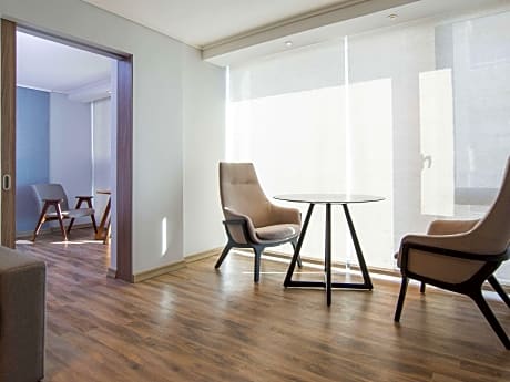 Hotel Pullman Viña del Mar San Martín is located right in front of the ocean, only a few steps away from Acapulco Beach. It offers modern rooms with free WiFi connection, and there is a rooftop swimming pool with a view. Rooms have air conditioning, mini-bar, desks, and cable TV. Some rooms offer views of the ocean, and some views of the city. There are private bathrooms, which include toiletries. Hotel Pullman Viña del Mar San Martín is located just a 10-minute drive from Marina Arauco shopping mall. Tours and excursions can be arranged at the touristic information desk. Several restaurants are in the area, close to the hotel. Santiago International Airport, Arturo Merino Benitez, is located 68 mi from Hotel Pullman Viña del Mar San Martín. To guarantee guest comfort, the hotel offers shuttle services for an additional cost.Hotel Viña del Mar San Martin by Pullman works since February 2018 under the Aton Hotels chain