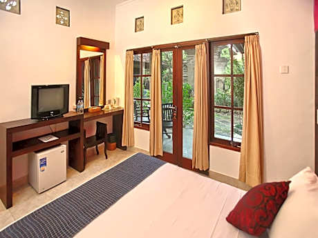 Experience an abundance of unparalleled facilities and features at Puri Sading Hotel.Maintain seamless communication using the complimentary Wi-Fi at hotel. Effortlessly arrange transportation to and from the airport using the hotel's airport transfer services. Discovering Bali becomes even more accessible, thanks to the taxi amenities provided at the hotel.For visitors traveling by automobile, complimentary parking is available.During your stay at this fantastic hotel, the attentive front desk personnel can provide you with a range of amenities such as luggage storage and safety deposit boxes.In search of city's top entertainment, seek assistance at the hotel's ticket service and tours for reservations.During chilly days and evenings, the hotel provides an in-house fireplace to ensure your warmth.For extended visits or whenever required, the laundry service ensures your preferred travel garments remain fresh and accessible. Craving relaxation? Make the most of your stay at the Puri Sading Hotel with convenient amenities like room service and daily housekeeping at your disposal.Kindly note that smoking is prohibited in the hotel to ensure fresher air for all visitors.For visitors wishing to smoke, designated smoking zones can be found.At Puri Sading Hotel, every guestroom is provided with convenient amenities and fittings to ensure a comfortable stay. Enhance your experience at hotel with the knowledge that certain rooms are equipped with linen service, blackout curtains and air conditioning for your convenience.A few accommodations within Puri Sading Hotel offer unique design elements such as a balcony or terrace.Certain rooms boast in-room amusement features such as television and cable TV, offering guests an enjoyable stay.In select rooms within the hotel, a refrigerator, bottled water and a coffee or tea maker is available to cater to your requirements when desired. It is worth noting that certain guest bathrooms feature a hair dryer and toiletries for your convenience. Begin your day with a scrumptious on-site breakfast available each morning at Puri Sading Hotel. At the hotel, an assortment of easily accessible and delicious meal choices are available to satisfy your appetite whenever it strikes.Enjoy an entertaining evening with your fellow travelers at the hotel's bar.At the hotel, discerning guests can also enjoy on-site culinary facilities like shared kitchen tailored to their preferences. During your stay at hotel, an array of engaging activities and amenities guarantees a delightful experience. During your stay, don't forget to allocate some moments to experience the readily available shoreline. Be sure to drop by the pool at hotel at least once during your stay. At Puri Sading Hotel, utmost care is taken to ensure guests' comfort. Relish your preferred beverage in your swimwear by the hotel's poolside bar.
