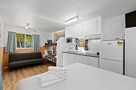 Just 10 minutes’ drive from Gold Coast Airport, Pyramid Holiday Park offers family-friendly accommodations. Guests can enjoy daily bird feeding shows, an outdoor swimming pool. Rooms feature a flat-screen TV and DVD player. You can enjoy a meal using the free BBQ facilities. Play a game of billiards or Recreation Room. All air-conditioned accommodations features an outdoor seating area and a kitchenette with a microwave, a stove cooktop and an electric kettle. Some room types offer access to a private patio or balcony. Pyramid Holiday Park is a 12-minute drive from Currumbin Wildlife Sanctuary. The Sea World, Movie World and Dream World theme parks are each a 35-minute drive away.