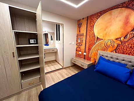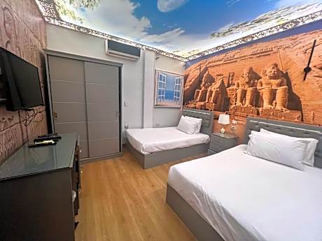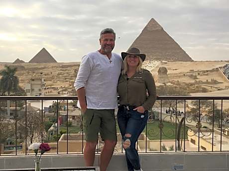 The original first-line inn facing the Great Sphinx and Pyramids, Located right in front of the Pyramids of the Giza Plateau and The Grand Egyptian Museum(GEM) is about 1.8 miles away. Because many hotels use fake or very similar names, it’s important to verify the real view before booking. To be sure you’re choosing a true front-row hotel, look for a clear view of the Sphinx—from your room or from the rooftop. The Sphinx is the detail that confirms you are directly facing the Giza Plateau. If you only see the pyramids, the hotel is nowhere near the front area—it can be several miles away, far from the actual viewing zone. Always check photos carefully and contact the property before finalizing your reservation. There is only one Pyramids View Inn Bed & Breakfast. This Bed and Breakfast has a rooftop terrace with a barbecue. There is a shared kitchen and free herbal teas and coffee are available. A free, arrival pick-up airport shuttle is also provided. Pyramids View offers air-conditioned rooms and apartments with free Wi-Fi. All Rooms and Suites come with a satellite TV and Streaming with Amazon Fire Stick, and Keyless electric door lock, all Rooms and Suites with private bathroom. The apartments and Suites have a spacious living room. Horse and camel riding trips can be arranged. After a busy day, guests can view the Pyramids Sound and Light Show from the rooftop. A mini-market, bakery, and pharmacy are within 5 minutes' walk from Pyramids View Inn Bed & Breakfast. Cairo International Airport is 25 minutes away by car. A complimentary airport pickup is available upon request.