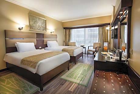 Located in the Dokki district of central Cairo, Pyramisa Suites Hotel offers rooms with Nile River or city views. It has a full service spa and 2 outdoor pools. Each spacious room at the Pyramisa Suites is fitted with air conditioning, TV, coffee & tea facilities and a mini-bar. The private bathroom comes with amenities and a hairdryer. The Pyramisa Suites Hotel offers a choice of 4 restaurants, serving food ranging from classic Egyptian and Italian cuisine to Indian and Chinese specialty dishes. Also featured is an international buffet restaurant. Dokki Metro Station, just 1640 feet from the Pyramisa, connects with 2 stops to Tahrir Square. The Egyptian Museum is a 5-minute drive from the hotel and the Giza Pyramids are 30 minutes by car away.