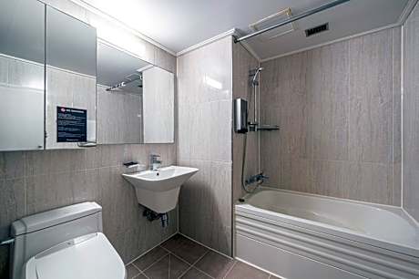 Great care is taken to ensure guests experience comfort through top-notch services and amenities. Remain linked during your visit by utilizing the complimentary internet access available.Experience the wonders of Pyeongtaek-si with ease by utilizing the services provided at taxi.Parking is accessible, supplied by the hotel for guests who arrive by car.Effortlessly plan your daily activities and travel requirements with concierge service, express check-in or check-out, luggage storage and safety deposit boxes provided by the front desk services.For extended visits or whenever required, the laundromat and laundry service ensures your preferred travel garments remain clean and accessible.Need some relaxation? Your room features daily housekeeping to make your stay even more comfortable and enjoyable. The hotel is completely smoke-free. In limited designated zones, smoking is exclusively permitted.Crafted for coziness, every guestroom provides an array of features, guaranteeing a tranquil night's sleep while maintaining the level of comfort. For a more enjoyable stay, select rooms at hotel are equipped with linen service, blackout curtains and air conditioning. At Pyeongtaek Stay Hotel, a selection of rooms can be found that showcase unique design elements such as a separate living room. For certain chosen rooms, guests can enjoy in-room amusement like television and cable TV as a part of their stay.Rest assured that your hydration needs will be met, as some guestrooms are equipped with a refrigerator, a coffee or tea maker, bottled water, instant coffee, instant tea and mini bar.Maintain your cleanliness and comfort using a hair dryer, toiletries, bathrobes and towels available in select guest restrooms. Each morning at Pyeongtaek Stay Hotel, a scrumptious, homemade breakfast kick-starts the day. During your visit, indulge in a range of delightful culinary choices at hotel to enhance your experience. Indulge in the numerous pursuits available at Pyeongtaek Stay Hotel. Treat and spoil yourself by stopping at massage and hot tub for a memorable experience. Eliminate those holiday calories by stopping by hotel and making use of their well-equipped exercise amenities.