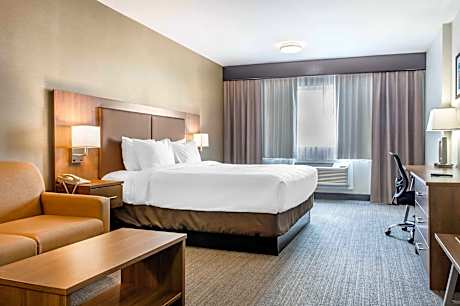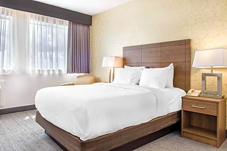 Located 3.5 mi from the Pierre Elliot Trudeau International Airport and 15 minutes from downtown Montreal, Quality Hotel Dorval features a free hot breakfast buffet, free WiFi and a free 24-hour airport shuttle service. A refrigerator, flat-screen cable TV, desk and coffee maker are included in all the rooms at Quality Hotel Dorval. Microwaves are also offered. The hotel has a restaurant/bar and lounge offering a variety of draft and local beers. Items on the International menu include sandwiches, pasta, meats and pizza. Guests can enjoy their favorite sports from the big flat-screen TV. There is also a business center and a fitness center at the hotel. Complementary fresh coffee/tea are available in the lobby as of 04:00 daily. Guests also have access to laundry facilities. Attractions in the area include bowling, a movie theater and shopping center.
