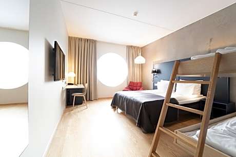 This modern hotel is next to Friends Arena and Mall of Scandinavia in Arenastaden District of Solna. Stockholm city center is an 8-minute train ride away. It offers a gym, 2 saunas and a 25th-floor restaurant. WiFi is free. Flat-screen TVs,work desk and designer décor are standard at Quality Hotel Strawberry Arena. Most rooms feature unique, circular windows and all rooms have a private bathroom with a shower or bathtub. The 25th-floor restaurant offers an à la carte menu, while the lobby restaurant serves lighter dishes. The daily breakfast buffet includes ecological options. Solna Train Station is 1969 feet from Quality Friends Hotel. Stockholm Arlanda Airport is a 30-minute drive away.