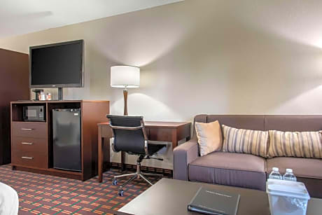 Experience an abundance of unparalleled facilities and features at Quality Inn & Suites.Maintain seamless communication using the complimentary Wi-Fi at hotel. Guests can avail parking facilities at the hotel.At the hotel, utilize the on-site laundromat, dry cleaning service and laundry service to maintain your beloved travel attire fresh, allowing you to bring fewer clothes. Craving relaxation? Make the most of your stay at the Quality Inn & Suites with convenient amenities like room service and daily housekeeping at your disposal. Kindly note that smoking is prohibited in the hotel to ensure fresher air for all visitors. At Quality Inn & Suites, every guestroom is provided with convenient amenities and fittings to ensure a comfortable stay. A few accommodations within Quality Inn & Suites offer unique design elements such as a separate living room.Certain rooms boast in-room amusement features such as television and cable TV, offering guests an enjoyable stay.In select rooms within the hotel, a refrigerator and a coffee or tea maker is available to cater to your requirements when desired. Essential restroom facilities are equally significant, and at the hotel, some visitor bathrooms offer a hair dryer to enhance your experience. Begin your day carefree at Quality Inn & Suites, as complimentary breakfast is offered for your convenience.During your stay at hotel, an array of engaging activities and amenities guarantees a delightful experience. Conclude your holiday perfectly with a visit to hot tub and spa on your final days.Be sure to drop by the pool at hotel at least once during your stay.Discover the fitness amenities at hotel to maintain your health and strength during your getaway.