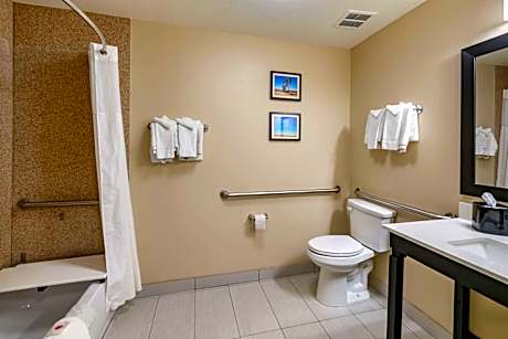 Conveniently located off Loop 289, the 100 percent nonsmoking Comfort Inn & Suites hotel is just minutes from the downtown area. This hotel is close to Texas Tech University, the Texas Tech University Health Sciences Center and Buffalo Springs Lake. The Lubbock Preston Smith International Airport is 10 miles away. Enjoy wine tasting at the award-winning Cap Rock Winery, located only 10 miles away. Visitors will enjoy shopping at the South Plains Mall, which is 10 minutes' drive from the hotel. Several area restaurants are also within walking distance. Hotel amenities and features include free hot breakfast, free hard-wired and wireless high-speed Internet access, free local calls, free coffee and executive boardroom. After a long day of work or play, guests of this hotel will enjoy relaxing in the indoor heated pool and sauna. Be sure to take advantage of the exercise room. Corporate travelers will appreciate conveniences like the business center and access to copy and fax services. All guest rooms come equipped with refrigerators, microwaves, flat-screen televisions, coffee makers, desks, hair dryers, irons and ironing boards. In addition, some rooms feature plasma televisions. Laundry facilities are located on the property for added guest convenience.
