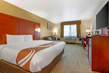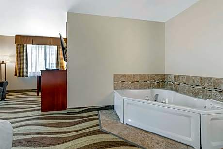 The Quality Inn & Suites hotel is conveniently located just five miles from the Madison International Speedway and one mile from downtown Stoughton. This Stoughton hotel is located only 12 miles from the many attractions in Madison. The hotel is also close to the Lake Kegonsa State Park, the Southtown Mall and the Madison Dane County Regional Airport. This Stoughton hotel provides full-service amenities including free hot, fresh and healthy breakfast, free local calls, a free newspaper, indoor heated pool and hot tub. Business travelers can appreciate conveniences like free wireless high-speed Internet access through the hotel and access to copy and fax services. The meeting room accommodates groups of up to 45 people. This hotel has designed guest rooms, including deluxe king whirlpool suites. Available upgraded rooms feature sofa beds, refrigerators, microwaves, irons, ironing boards and massage showerheads. Adjoining rooms are also available. Other amenities include guest laundry, truck and trailer parking and cold weather hookups.