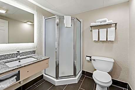 Quality Inn & Suites near Robins Air Force Base features an seasonal outdoor pool and rooms provide free WiFi and cable TV with HBO. Robins Air Force Base is 7 miles away. Each room at Quality Inn & Suites Warner Robins includes a coffee maker, microwave, and refrigerator. For guests’ convenience, ironing facilities, a hairdryer, and free local telephone calls are also available in the rooms. Quality Inn & Suites near Robins Air Force Base offers an on-site fitness center. Free coffee is available in the lobby, 24-hours a day, at this pet-friendly hotel. The International City Golf Club is 7 miles from Quality Inn & Suites Warner Robins. Galleria Mall is less than 5 minutes' drive away.
