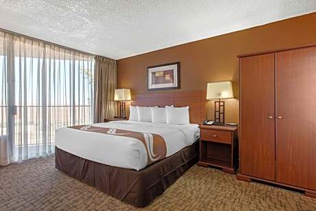 The Quality Inn at Lake Powell - Page overlooks Glen Canyon Dam and Lake Powell, in the heart of Indian Country. Hotel amenities include free local calls, gift shop and a seasonal outdoor pool with picnic area. The hotel also provides free airport shuttle service. This hotel provides business travelers with conveniences like computer hookups, high-speed Internet access and access to copy and fax services. Banquet and meeting rooms are available to accommodate most events and business functions. All spacious rooms include coffee makers, cable television, hair dryers, irons and ironing boards. In addition to standard amenities, some rooms feature microwaves and refrigerators. The hotel offers valet cleaning service and guest laundry facilities. All rooms have either a balcony or patio with the views of the canyons and the Colorado River. This is a pet-friendly hotel. A range of activities available nearby: cruise tours of Lake Powell, ATV tours, and helicopter and airplane tours of the local sites, boating, water skiing, hiking, biking, fishing, golfing and raft trips on the Colorado River. There are a variety of restaurants and cocktail lounges located in the area. The Blue Corn Restaurant and the Long Bow Tavern are located on the premises. This hotel is near Rainbow Bridge National Monument and guided tours of Antelope Canyon. Other popular attractions include the Navajo Indian Village, Coconino Community College and the Page Municipal Airport.