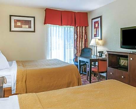 Quality Inn Bloomington Near University is conveniently located near downtown, just two miles from Indiana University Bloomington, the Memorial Stadium football field and the Assembly Hall arena. This Bloomington hotel is close to area attractions including McCormick's Creek State Park, Brown County State Park and Lake Monroe. Indianapolis International Airport is one hour away. Most rooms are nonsmoking, and all rooms come equipped with coffee makers, hair dryers, microwaves and refrigerators. In addition, king rooms with spacious work desks and suites are available. Guest laundry facilities are located on the property for added convenience. Quality Inn Bloomington Near University provides guests with many full-service amenities, including: Free wireless high-speed; Internet access; Free continental breakfast; Free local calls; Exercise room; Indoor heated pool and hot tub Business travelers will appreciate conveniences like the business center in the lobby, access to copy services and a free newspaper. Meeting space is available for a variety of functions. Visitors will enjoy shopping at the nearby Bloomington Antique Mall and College Mall. Bloomington's business and historic districts are also close by. A variety of restaurants and cocktail lounges are located in the area.