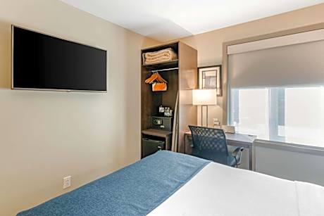 Located just steps away from the Latin Quarter neighborhood, this downtown Montreal hotel offers cozy accommodations, and is an ideal location for exploring the surrounding area by foot or public transportation. Guests at Quality Inn Center-Ville can start their morning with a breakfast buffet featuring waffles, eggs, meat and fresh fruit. Historic Old Montreal and the Montreal Convention Center are less than 1.2 mi from Quality Inn Center-Ville. Saint Catherine Street and the Montreal Bus Central Station is just 1640 feet away.