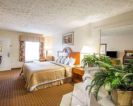 The Quality Inn hotel is located less than one mile from North Georgia College & State University. The city hosts many gold mining attractions like Dahlonega Gold Museum Historic Site, Consolidated Gold Mines and Crisson Gold Mine. This Dahlonega, GA hotel is only 12 miles from the North Georgia Premium Outlets and 28 miles from Helen. Additional points of interest include Camp Frank D. Merrill, Hidden Lake Academy and Nicklaus Golf Club at Birch River. Several wineries, including Frogtown, Three Sisters Vineyards, Wolf Mountain Vineyards & Winery and the BlackStock Vineyards and Winery, are only a short distance away from the hotel. Fishing, horseback riding, hiking along the Appalachian trail, whitewater rafting, canoeing, camping and panning for gold are just a few of nature's adventures awaiting travelers. The hotel is near many family-style restaurants, antique, craft and gift shops and numerous buildings on the national register of historic places. Guests of this hotel are provided with many amenities, including free continental breakfast, free local calls, the seasonal outdoor pool, free wireless high-speed Internet access in all rooms and a business center. All guest rooms include refrigerators, microwaves, coffee makers, irons, ironing boards and cable television. In addition to standard features, some rooms have whirlpool bathtubs. Ample bus and truck parking is located on the property.