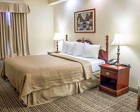 The Quality Inn in Goldsboro, NC offers easy access to Seymour Johnson Air Force Base, home to Air Combat Command’s 4th Fighter Wing. This interior hall hotel is also convenient to Herman Park, Berkeley Mall and the home of the world-famous Mt. Olive Pickle Company, as well as some of the best barbecue in Eastern North Carolina. Guests of the Quality Inn hotel are invited to relax in the seasonal outdoor pool, and enjoy amenities such as free continental breakfast and free high-speed Internet access. All guest rooms offer a flat-screen television with cable, coffee maker, microwave, pillow-top mattress, hair dryer, alarm clock, iron and ironing board. Some rooms feature a sofa sleeper. This is a pet-friendly hotel, with four-legged friends allowed to stay for a fee.