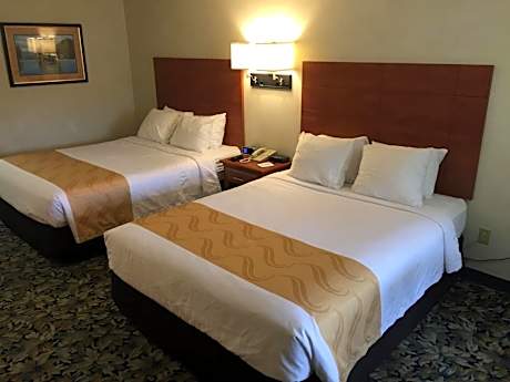 The Quality Inn Lake George is located in the center of Lake George Village, within walking distance of Million Dollar Beach. It is just minutes from Prospect Mountain, The Great Escape & Splashwater Kingdom, Saratoga Gaming and Raceway and Adirondack Community College. Lake George Village offers a village setting combined with interesting and fun things to do. Within two blocks, visitors can rent a boat, ride a parasail, take a boat cruise, play miniature golf, hit the arcades, watch a war reenactment, take a carriage ride, swim, jet ski, grab a great lunch or have a tasty cocktail. The public trolley stops at the hotel's entrance. Hotel amenities and features include free continental breakfast, free wireless high-speed Internet access, free weekday newspaper and free local calls. Guests can also enjoy the exercise room and game room. After a busy day of work or play, relax in the seasonal outdoor pool. Business travelers will appreciate voice mail and access to copy and fax services. The meeting room accommodates up to 50 people for most events and business functions. All guest rooms include refrigerators, irons, ironing boards, hair dryers, coffee makers and cable television. Handicap access, adjoining, smoking and nonsmoking rooms are available.