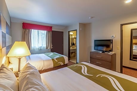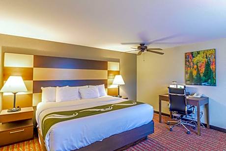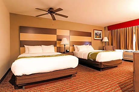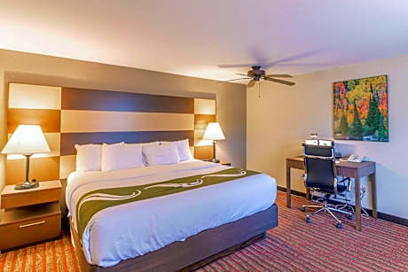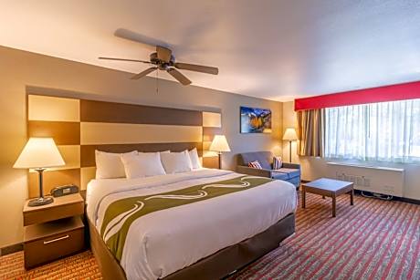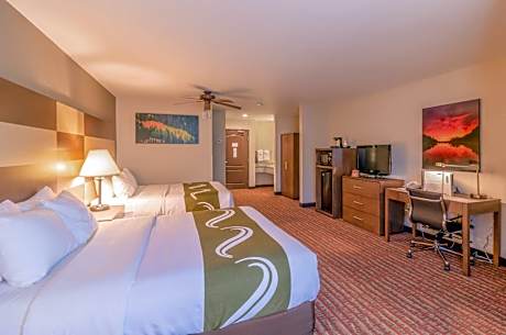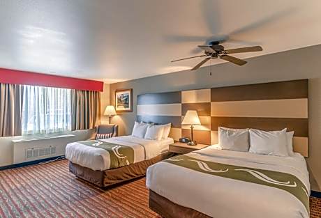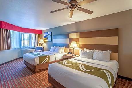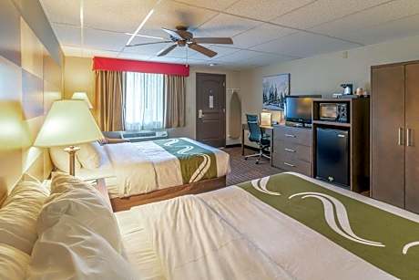 The smoke-free Quality Inn near Rocky Mountain National Park is minutes from Rocky Mountain National Park. Enjoy a free hot breakfast featuring eggs, meat, yogurt, fresh fruit, cereal, and a waffle maker. All guest rooms at Quality Inn near Rocky Mountain National Park are equipped with free WiFi and 32-inch flat-screen televisions, coffee makers, hair dryers, irons, ironing boards, microwaves and refrigerators. The hotel also offers two-bedroom, two-bath loft units with features like gas log fireplaces and balconies facing the courtyard and mountains. Guests can enjoy amenities such as the seasonal outdoor pool, indoor hot tub, exercise room, meeting room and access to fax services. An on-site meeting room accommodates up to 20 people. Guest laundry services are available. The hotel is close to a wide variety of activities like sightseeing, wildlife viewing, hiking, fishing, boating, horseback riding, golfing and browsing nearby specialty shops. Other nearby attractions include Estes Park Aerial Tramway and Rooftop Rodeo, both 5 minutes' drive away.